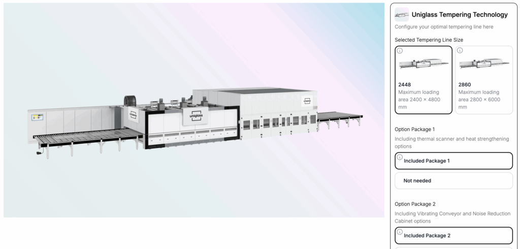 - Customers select the line type (e.g. glass tempering or IG line).