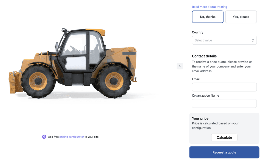 Product configurator with Request a quote function