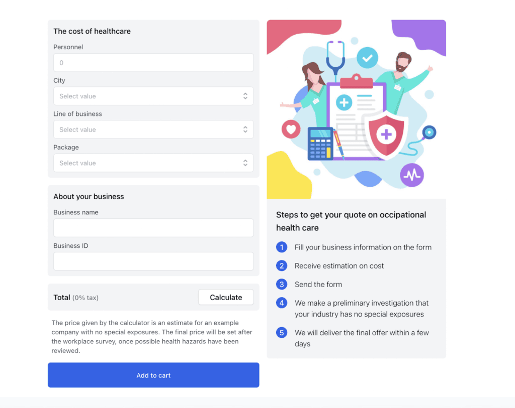 You’d be better off allowing these customers to fill out a short form online, get a cost estimate, and request an offer. Here’s an example of the questions a healthcare company asks: